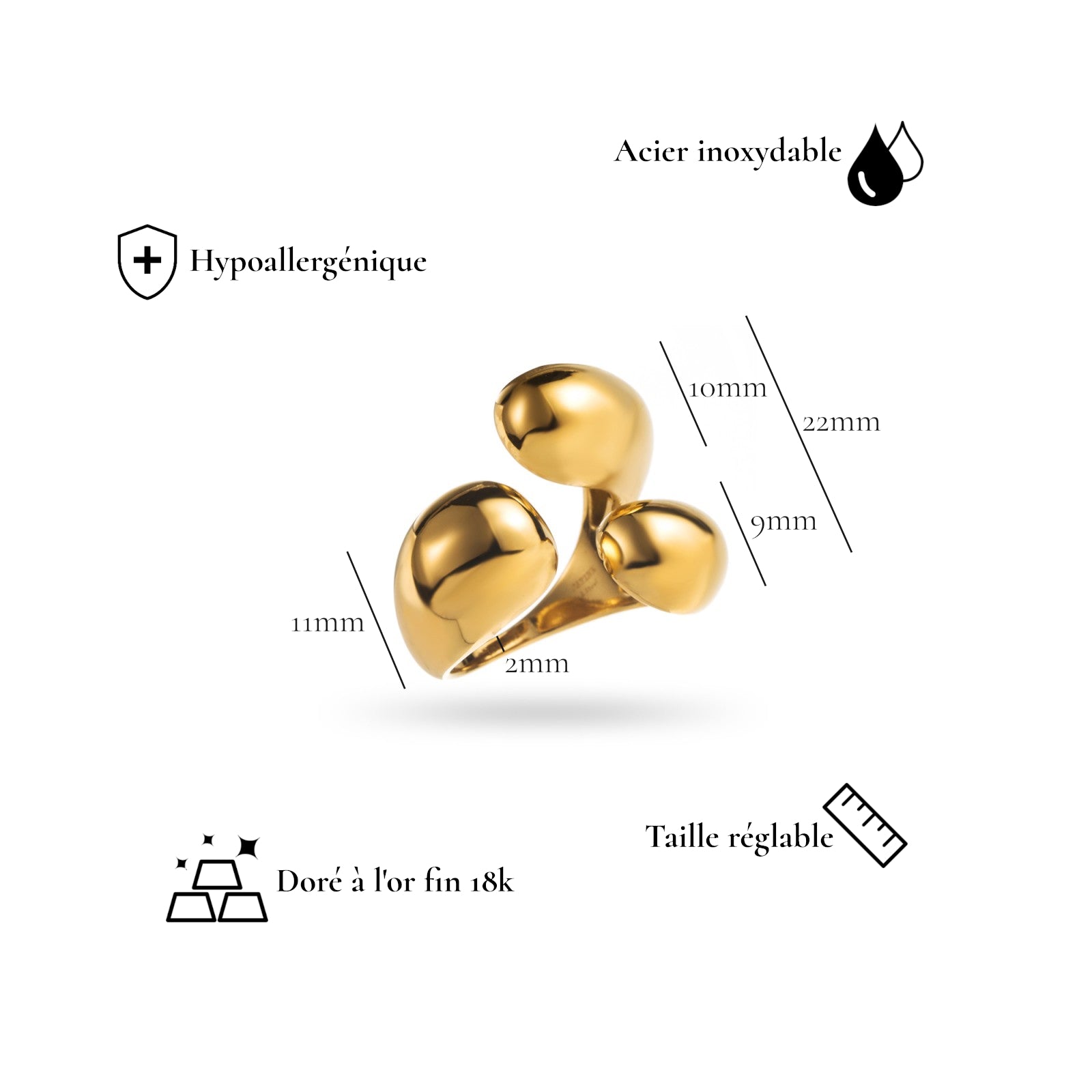 une touche d'élégance et d'originalité à votre style. Les trois éléments créent un équilibre harmonieux, faisant de cette bague un accessoire unique et polyvalent. Parfaite pour celles qui suivent les dernières tendances en matière de bijoux, elle saura sublimer toutes vos tenues.